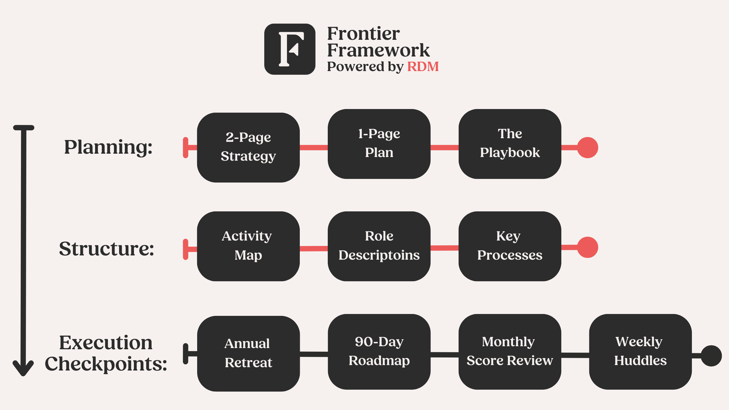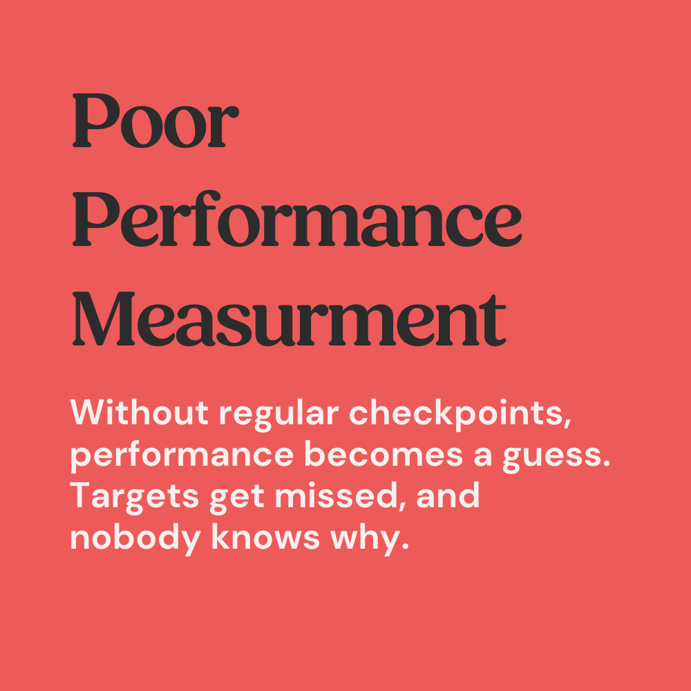 This is why we build four checkpoints (annual plan, quarterly resets, monthly reviews, weekly check in) anchored by the right plan.