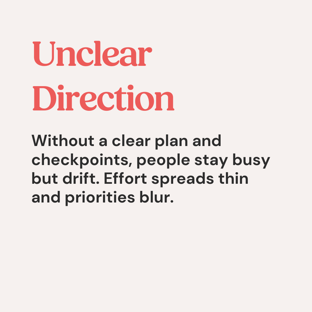 When leaders do not have a clear plan, a structure that holds, and regular checkpoints, the week becomes reactive. The team waits for direction. And progress becomes accidental.